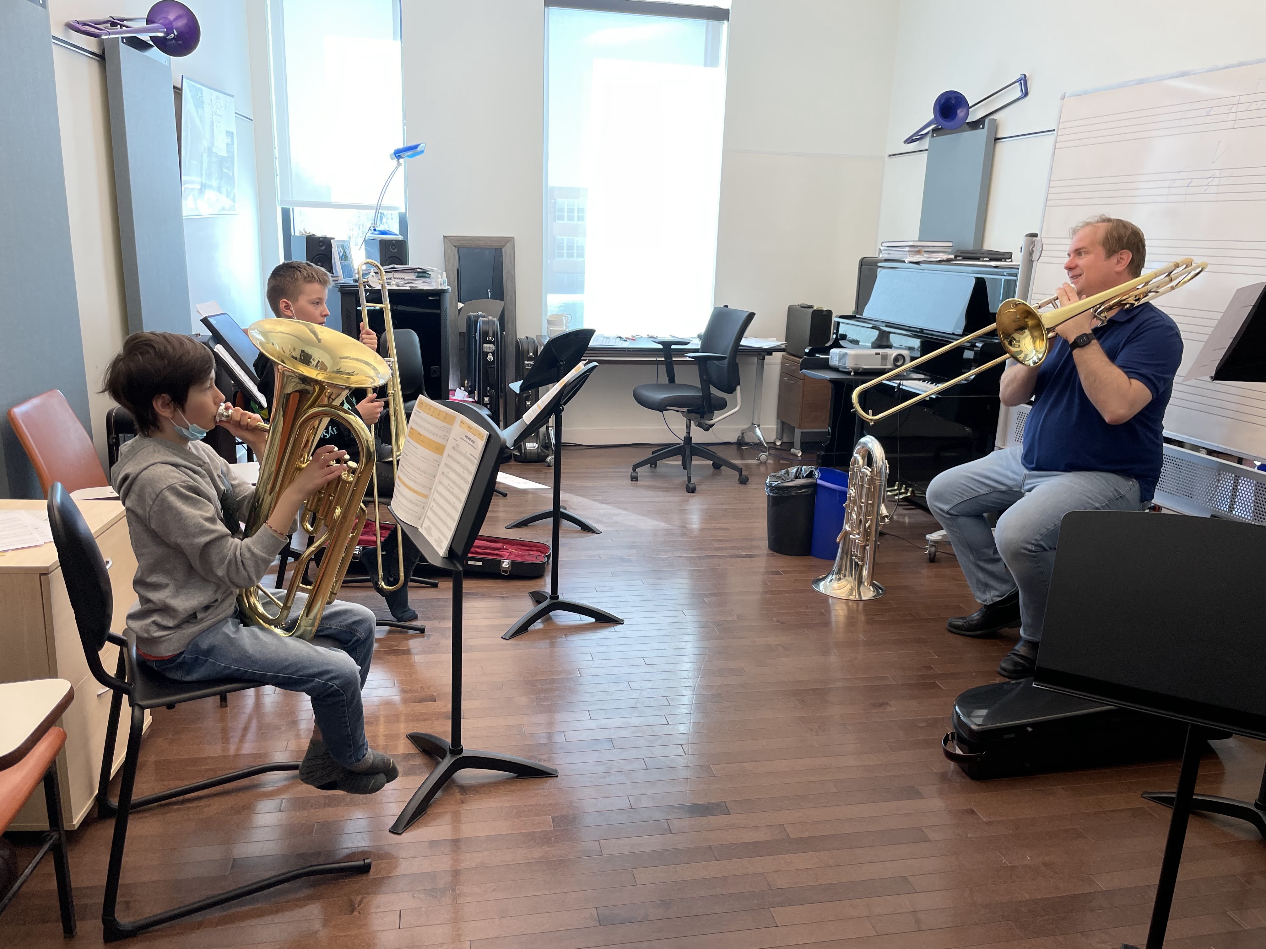 Le projet de développement en cuivres est en place depuis maintenant 10 ans. Cette année, Neal Bennett travaille avec des élèves de l'Harmonie primaire afin de permettre à ces derniers de perfectionner sa spécialité.