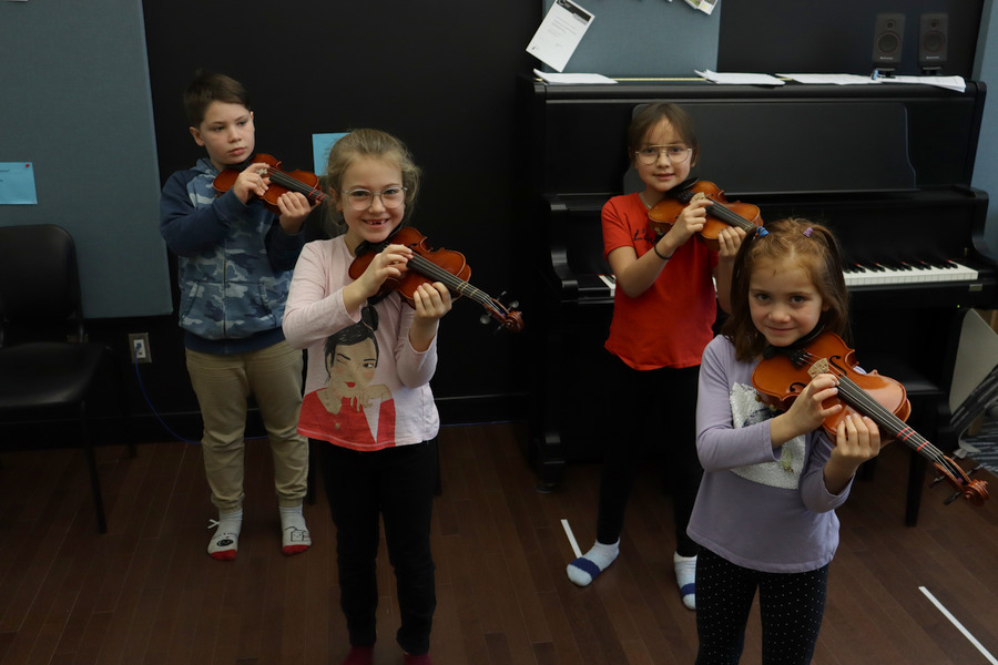 Depuis 2017, Frédéric St-Pierre enseigne le violon à des jeunes élèves de 3e année de l'école Saint-Joseph de Val-d'Or. Les participants se déplacent donc au Conservatoire, sur l'heure du dîner, afin de découvrir les bases de cet instrument.